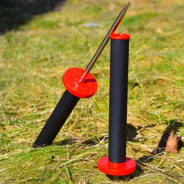 Оскільки виставку, яка мала проходити на початку квітня перенесли, ми б хотіли ознайомити вас із деякими речами, які зробили в цьому сезоні, і мали продемонструвати на цій виставці. Сьогодні я вам розповім про підставки для вудилищ. Але перед цим поінформую про передумови їх створення, оскільки схожими девайсами наш риболовний клуб користується вже давно. Так це були підставки створені в «гаражних» умовах і не зовсім відповідали тим вимогам, які ми хотіли. Але оскільки нічого подібного на ринку не було – ми користувались тим, що мали. Із недоліків які нас не влаштовували це велика вага, незручність у транспортуванні, відсутність дренажної системи, через що комелі вудилищ під час дощу знаходились у воді, низька якість матеріалів, а також негарний естетичний вигляд. Розроблюючи свої підставки ми їх протестували у минулому сезоні і відповідно зробили без зазначених недоліків. Тепер розкажу, що таке ці підставки, як ними користуватись і чому, як ми вважаємо, вони будуть корисними любому риболову. За допомогою цієї підставки ви завжди, у будь якому місці, як в землі, твердому грунті, або на дерев’яному помості, зможете встановити і залишити вудилище без ризиків його пошкодження. При короповій ловлі, мабуть усі стикались із проблемою куди подіти вудилище, яким виважували рибу і вже перенесли її в мат. Звичайно можна покласти вудилище на мат, землю, або попросити когось його потримати, щоб звільнити рибу від гачка. Однак у всіх цих випадках виникають незручності та ризики наступити на вудилище або його вдарити, вже не кажучи про ймовірність попадання піску чи болота в котушку. Підставка стане у пригоді в разі необхідності переоснащення вудилища, оскільки зменшаться ризики пошкодження вудилища та забруднення, і значно підвищиться швидкість таких дій у порівнянні з впиранням вудилища до дерева – відповідно одним кінцем у грунт, пісок, асфальт, або болото, а якщо немає дерева то до палатки. Крім цього, в таку підставку можна поставити маркерне вудилище, сподове, або будь які інші. Наразі, при участі у змаганнях, завдяки таким підставкам є можливість розмістити запасні вудилища у будь-якому місці сектору. Така підставка стане у пригоді при кастингових закидах, оскільки такі переважно здійснюються у полі де немає можливості навіть вперти вудилище. Оскільки зазначена підставка може помістити будь-яке вудилище товщиною до 28 мм, вона стане у пригоді любителям фідерної ловлі, ловлі спінінгом, а також незамінним атрибутом любителям ловлі риби з човна. Так як конструкція дозволяє встановити її у човні і бути впевненим у збереженні вудилищ. Тепер про саму підставку. Виготовлена вона із висококласного алюмінію. Тверде анодування забезпечує високу естетичність та захист від пошкоджень. В комплект входять дві підставки та сумка для перевезення. Неймовірна компактність 30|14|5 і легкість – 340 грам, дозволяє її легко транспортувати. Висота на яку вудилище встановлюється у підставку дорівнює 26 см. Крім цього підставки комплектуються шурупами для можливості встановлення підставок у дерево. Як вже зазначали, є можливість встановлення підставки у човен, для цього просто потрібно замінити шурупи на гвинти (М6, потай). У підставці продумана дренажна система, що виключає можливість перебування води у тубі. При встановленні підставки у твердий грунт, шт